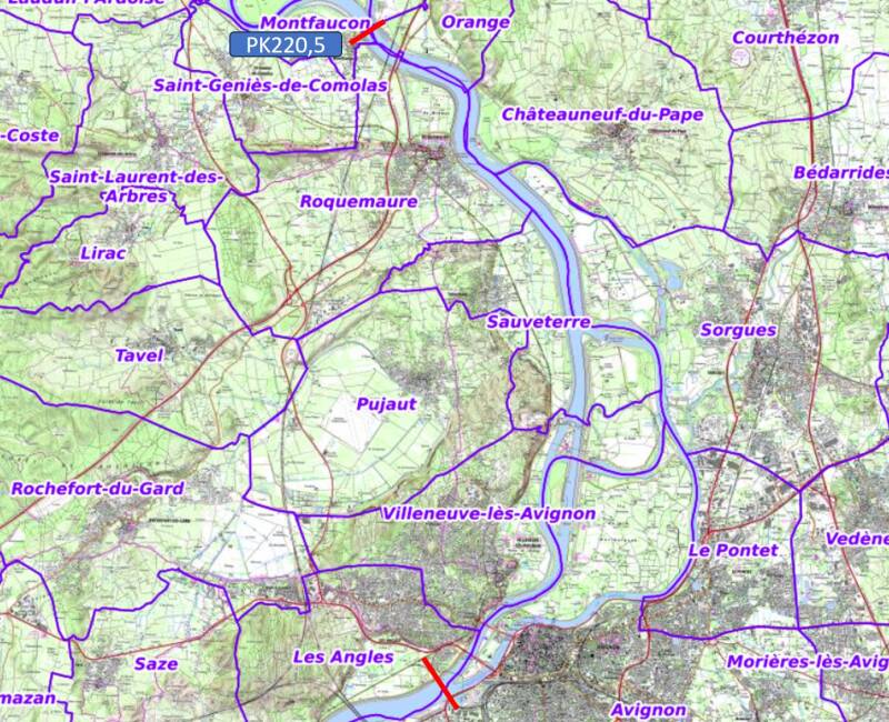 Rhône bras de Villeneuve les Avignon de la limite communale Nord d’Avignon au pont SNCF (TER) d’Avignon du pont de chemin de fer d’Avignon au pont d’ARAMON,
